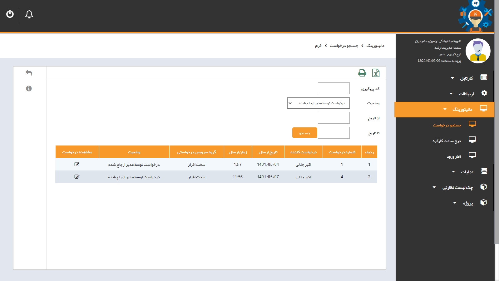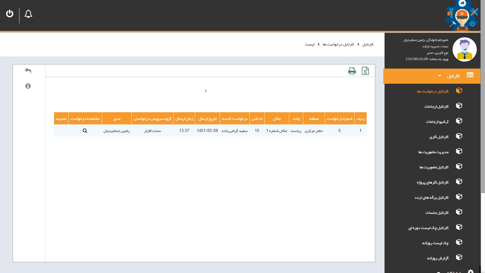 کارتابل کاری (درخواست هایی که مدیر به خود ارجاع داده است )