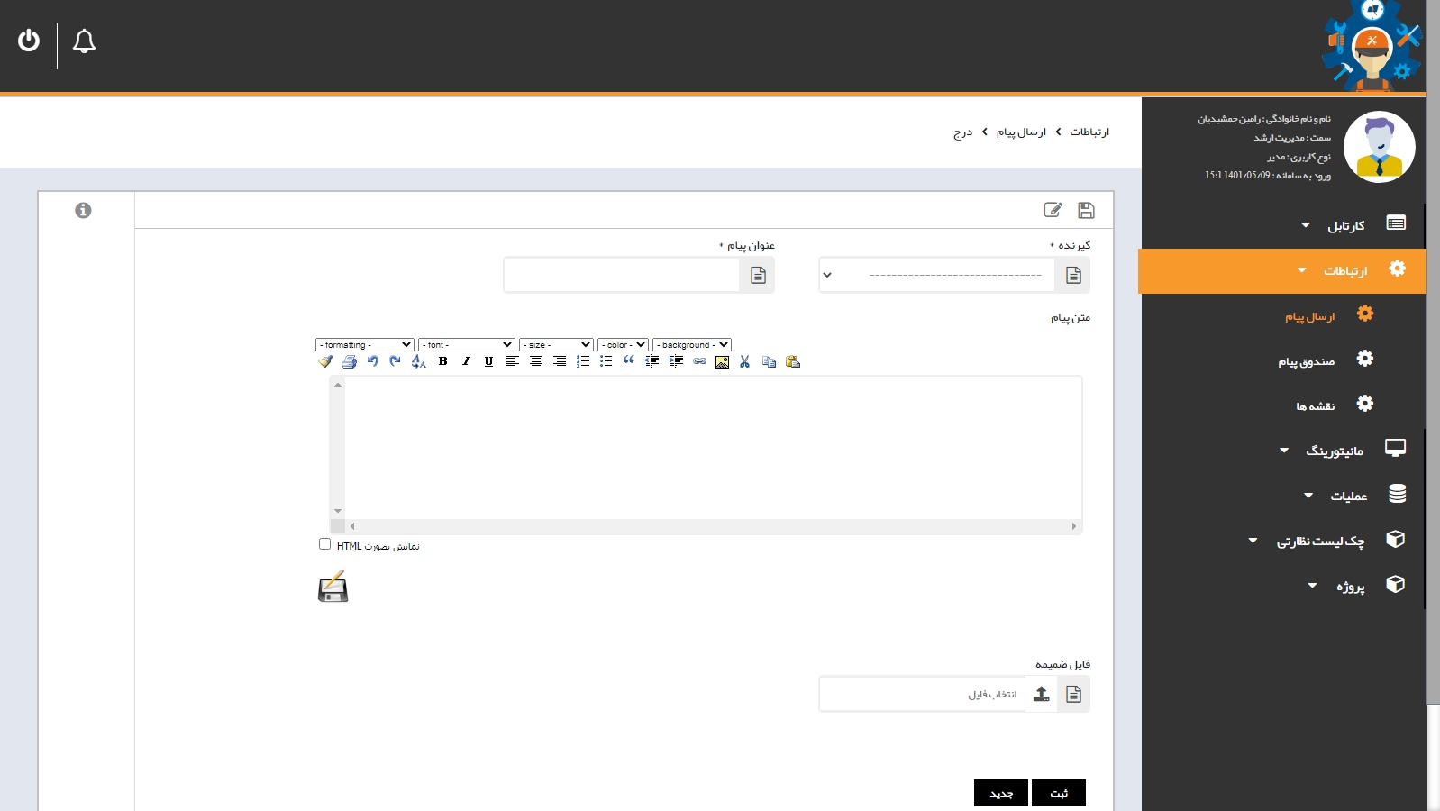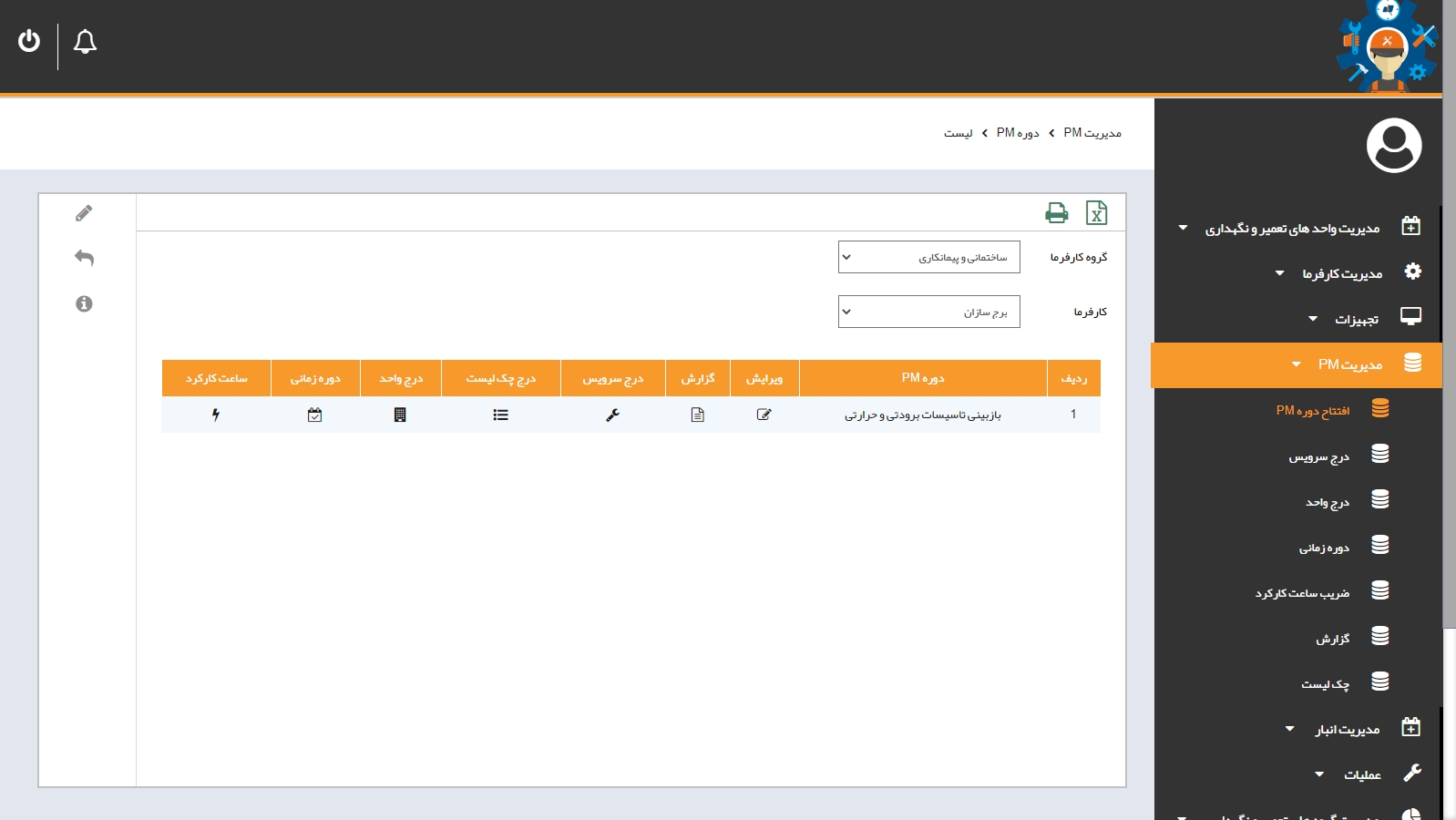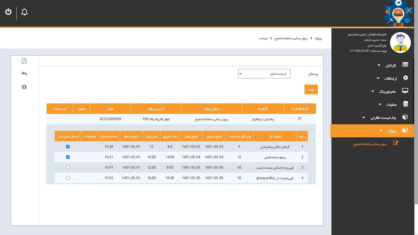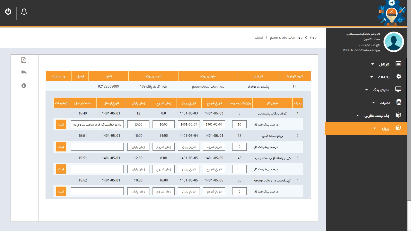 ارسال زمانبندی کارهای پروژه به گروه های تعمیر و نگهداری