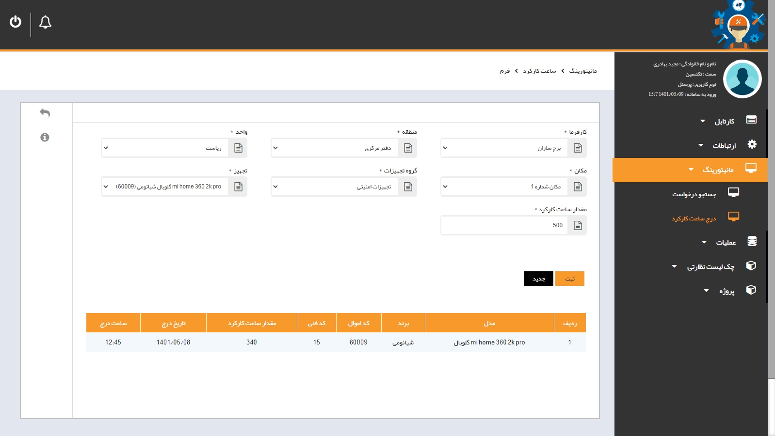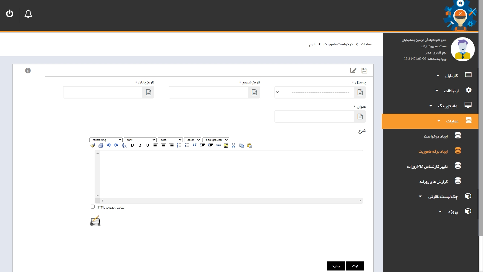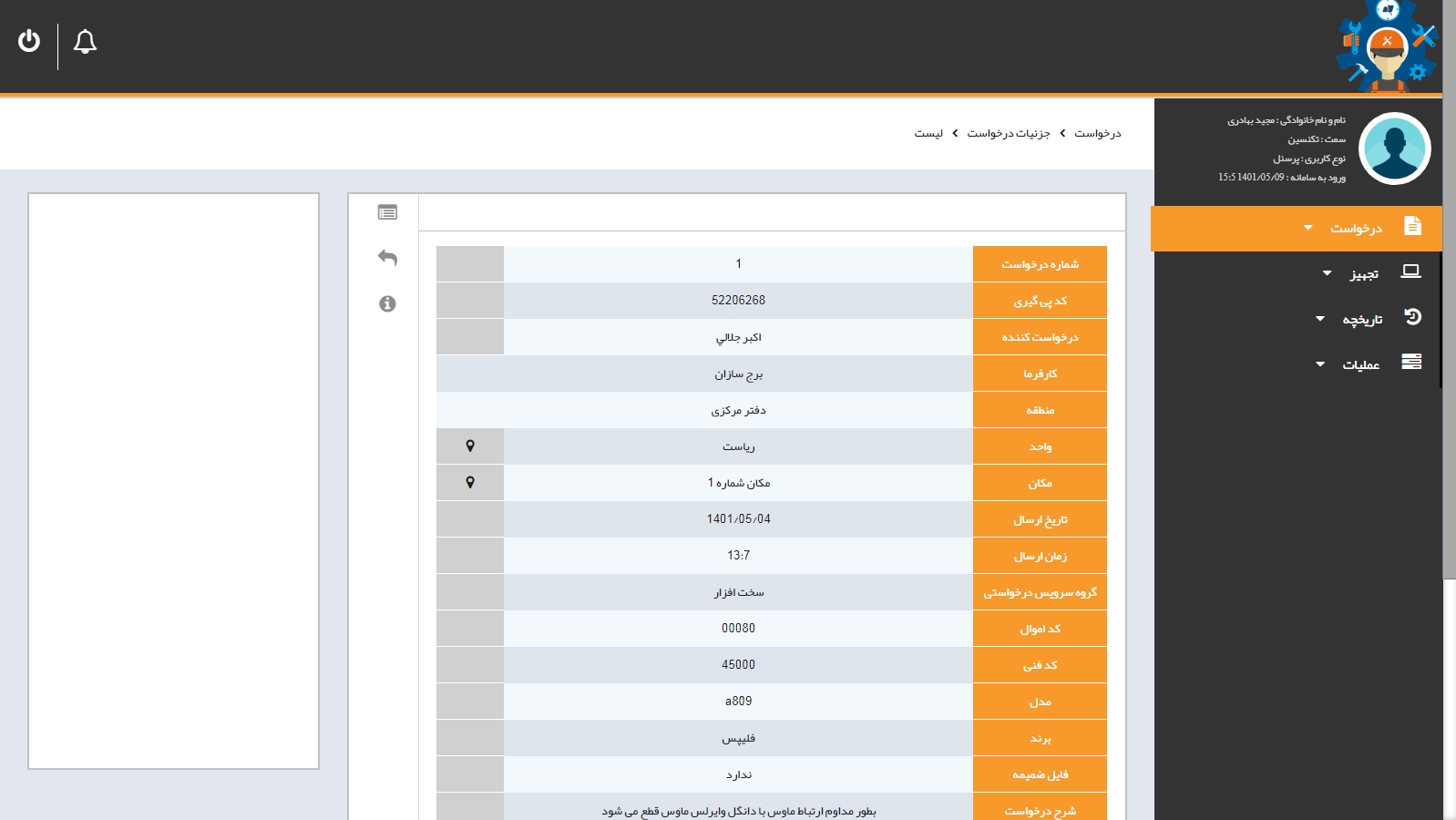 درخواست سیستم نگهداری و تعمیرات بهبود