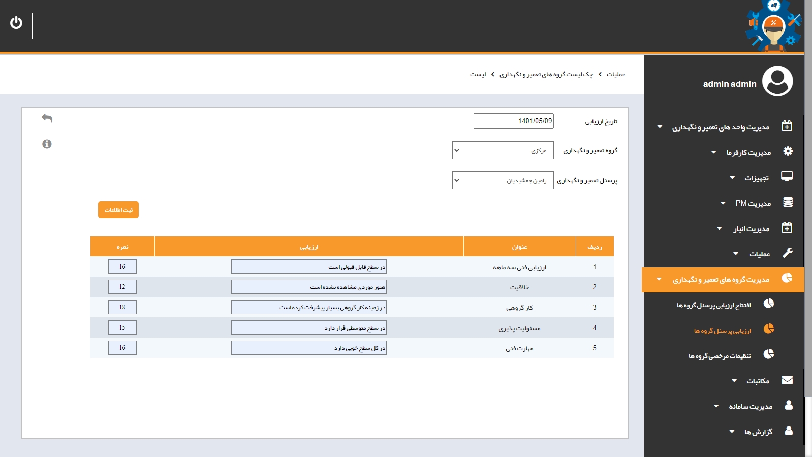 افتتاح ارزیابی پرسنل گروه های تعمیر و نگهداری